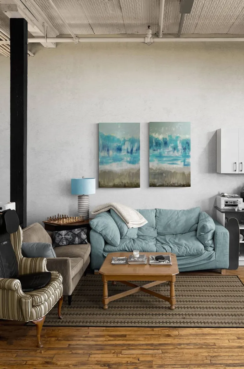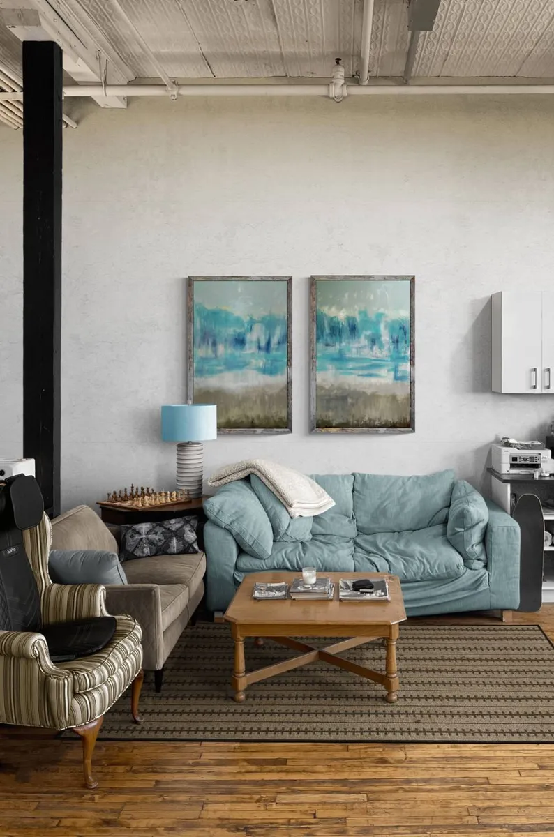 "Rain" - Original Abstract Painting Set Immerse yourself in the tranquil beauty of "Rain," a one-of-a-kind abstract painting set that evokes the soothing essence of a rainy day. Each canvas, measuring 110 cm x 70 cm, is meticulously crafted with blue and earthy tones, bringing a refreshing calm to your space. Inspired and Intuitive Creation: "Rain" was born from a deep emotional connection to nature, painted intuitively to capture the serene feeling of water droplets and the scent of rain. This original design is unique, ensuring your collection stands out with a truly exclusive piece. Framing is extra and not included in this price. Kindly share in the enquiry form if you need framing. Shipping will depend on the location.
