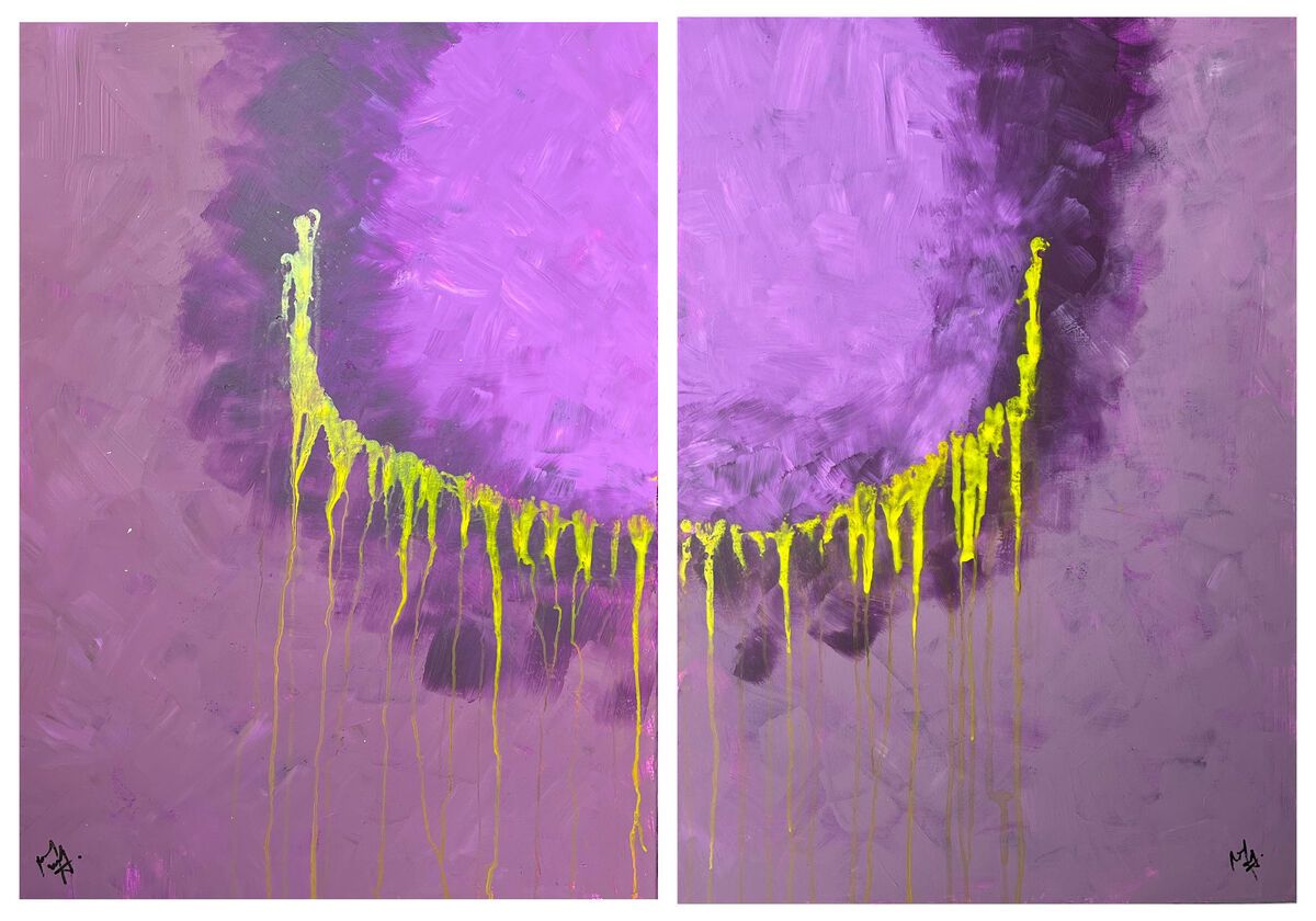 70 cm x 50 cm each This painting is a set of two where the artist painted using vibrant colors. The artist did not give any title to this painting as it is open to interpretation and may make sense to the right admirer.