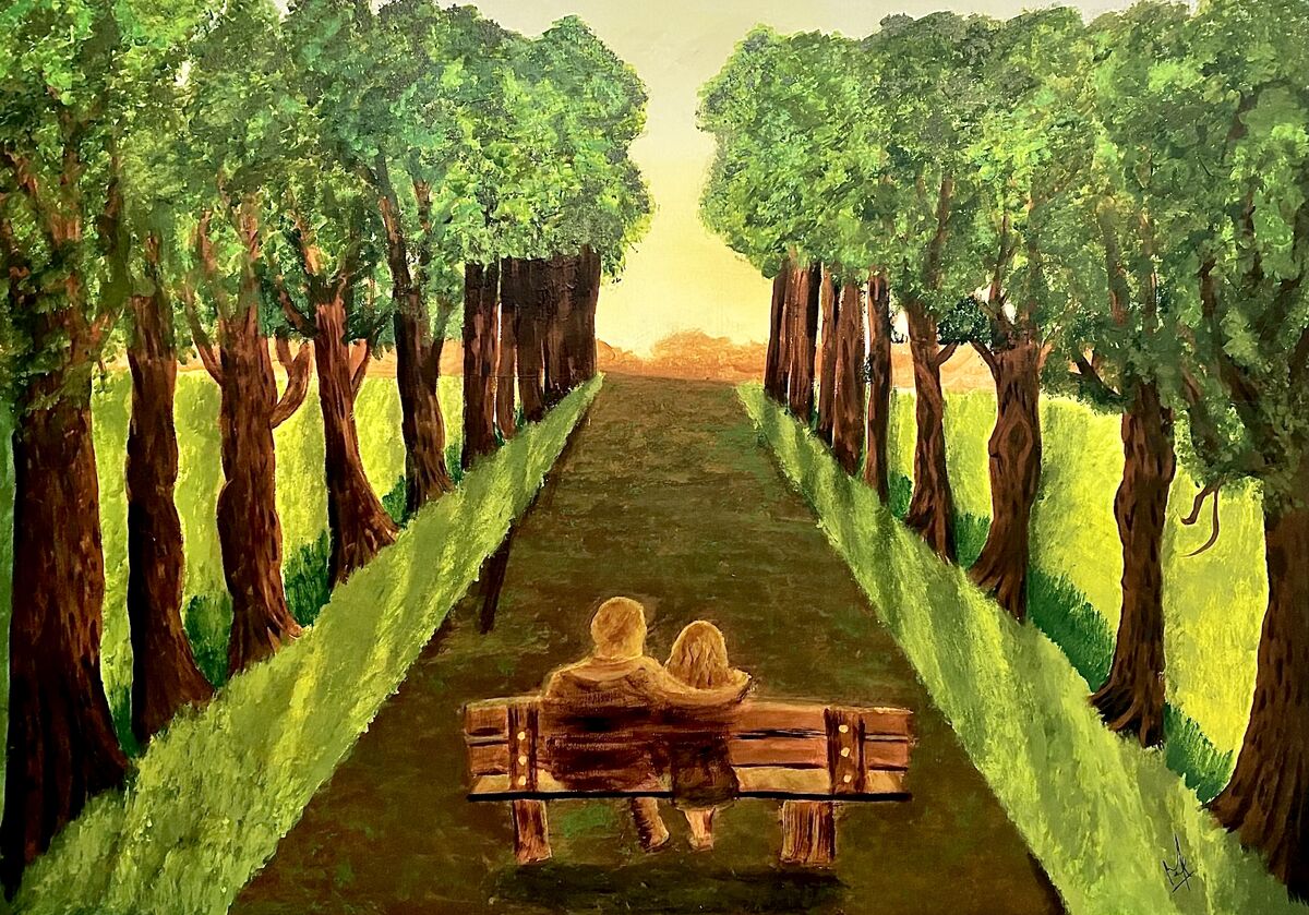 The artist created this painting for her husband when they were engaged to show their life together is waiting and it is going to be bright.