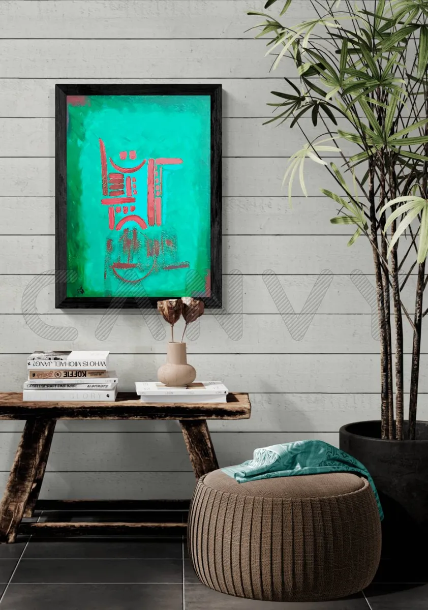 This elegant turquoise painting takes you deep into the ocean where you find lots of gold which was hidden in the depths of the water for years, just like our feeling as human beings; it shines when it is found. The artist reflects her emotions of finally feeling confident in her talent for painting which she kept from the world because little did she know that it was the hidden treasure that was to be found by herself only after all!